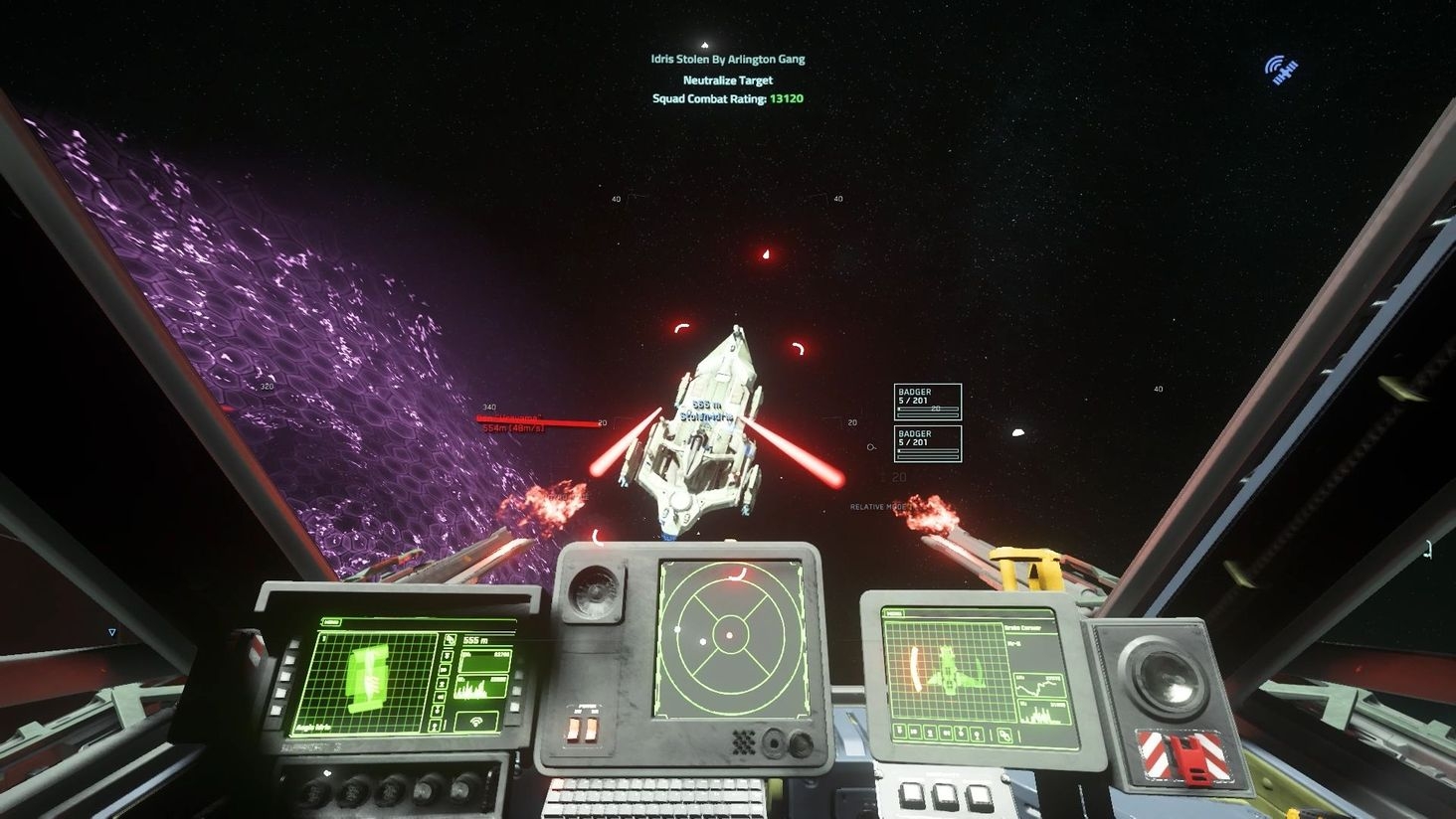 Esscrin, Mr-S, and myself, Reconson, of The Drengr Raiders, from the Halls of Valhalla, took to the stars to take on the infamous Arlington Gang who have commandeered an Aegis Idris. We started our approach with the Drake Corsair Ripping through the shields and puncturing the hull of the Idris. After diligently fighting and getting hammered by the size 10 railgun, our systems began to malfunction and we began to plummet. With Mr-S' quick thinking he managed to regain control. Using our quantum drive, we jumped to a nearby outpost to grab an Anvil Pisces. There for some odd reason I decided to do situps. We then regrouped at Grim Hex. We said to ourselves "We need more firepower". So we returned full speed towards the Arlington Gang with an Aegis Retaliator, to Retaliate. As is the name. Using missiles we managed to outgun the Idris' shield generator allowing Esscrin and myself to tear through one of its main thrusters, subsequently causing the Idris to be less mobile than it already was. With the crippled Idris giving chase, we headed to a nearby outpost to change the pace of the fight. As the Idris slowly approached we scattered into nimble Mirai Fury's leaving blurs in the sight of the Arlington Gang. After a few casualities and having slowly peppered the Idris, we decided to take out one of my most favorite heavy fighters. The RSI Scorpius. Mr-S Piloting with Distortion Repeaters and missiles at his disposal, and your boy on the big guns up top rocking 4x size 3 Panther Repeaters. With the best coordination you will ever see in a two man ship, we sent that damned Idris along with its crew to fiery hell in a spectacular explosion of an ending.