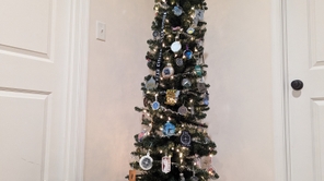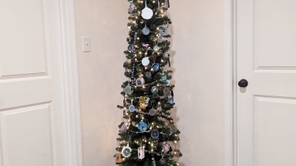 Most of the ornaments on this tree were created using thrifted finds and upcyled into new masterpieces.