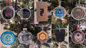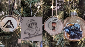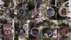 The ornaments are made with in game memories and real life event swag and challenge coins.