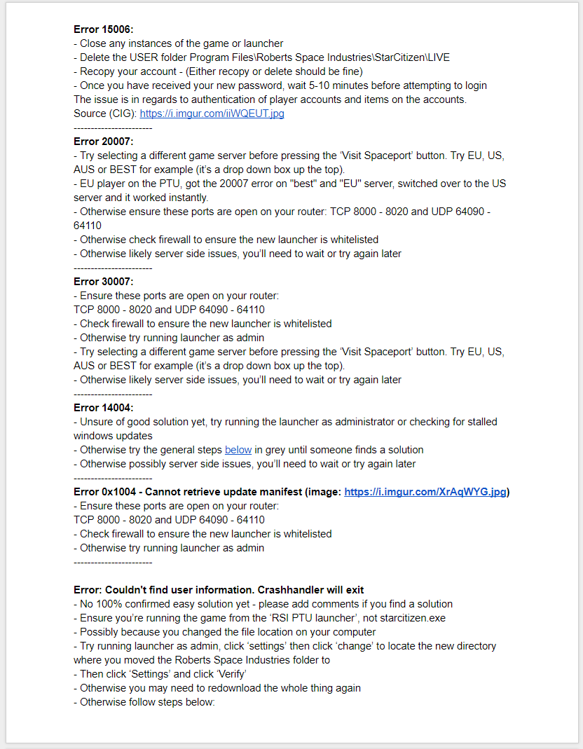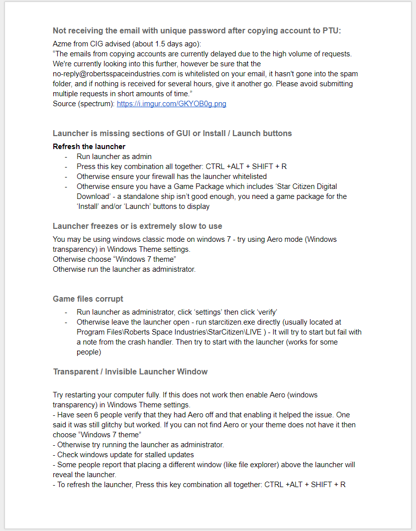 Greetings Star Citizen fans, Here is the shared google document we use for resolving helpdesk is...