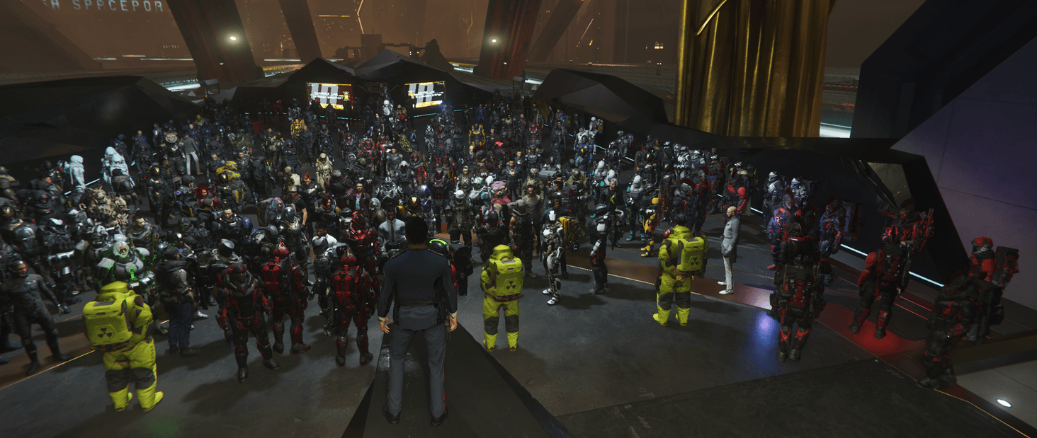 TTO Community set up another massive meet up event in the verse. This time we organized the meet up at Lorville. Everyone teamed up in the business district for the speech and mini games. We honoured the citizens who are no longer with us, played some hide and seek and continued in space for the largest Free For All ever! We gave away 5 pledge ships, 7 vehicles, 3 armor sets and 5 bundles during the event.
