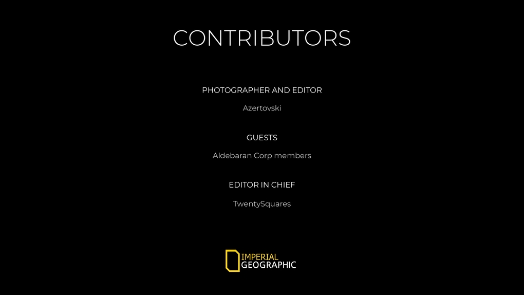 We are a non-profit scientific and educational organizations which operates within the UEE territory. Our interests include geography, archaeology, and natural science, the promotion of environmental and historical conservation, and the study of ‘Verse culture and history. IMPGEO revolves around exploration. All our job is focused on exploring new territories and, even better, getting to know the area of the ‘Verse we live in. Our fleet’s main goal is to reach the ultimate star and taking the ultimate shot while getting there. To us, destination is not so relevant. It’s the journey which matter the most.