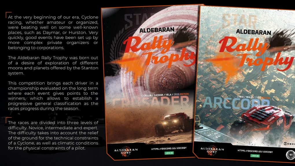 The Aldebaran Rally Trophy was born out of a desire of exploration of different moons and planets offered by the Stanton system.