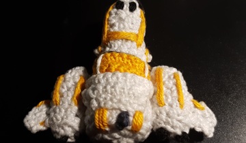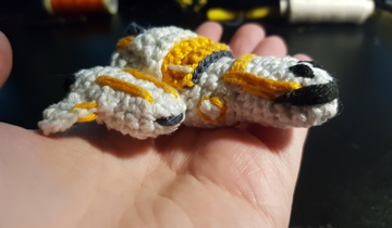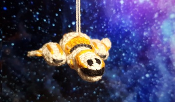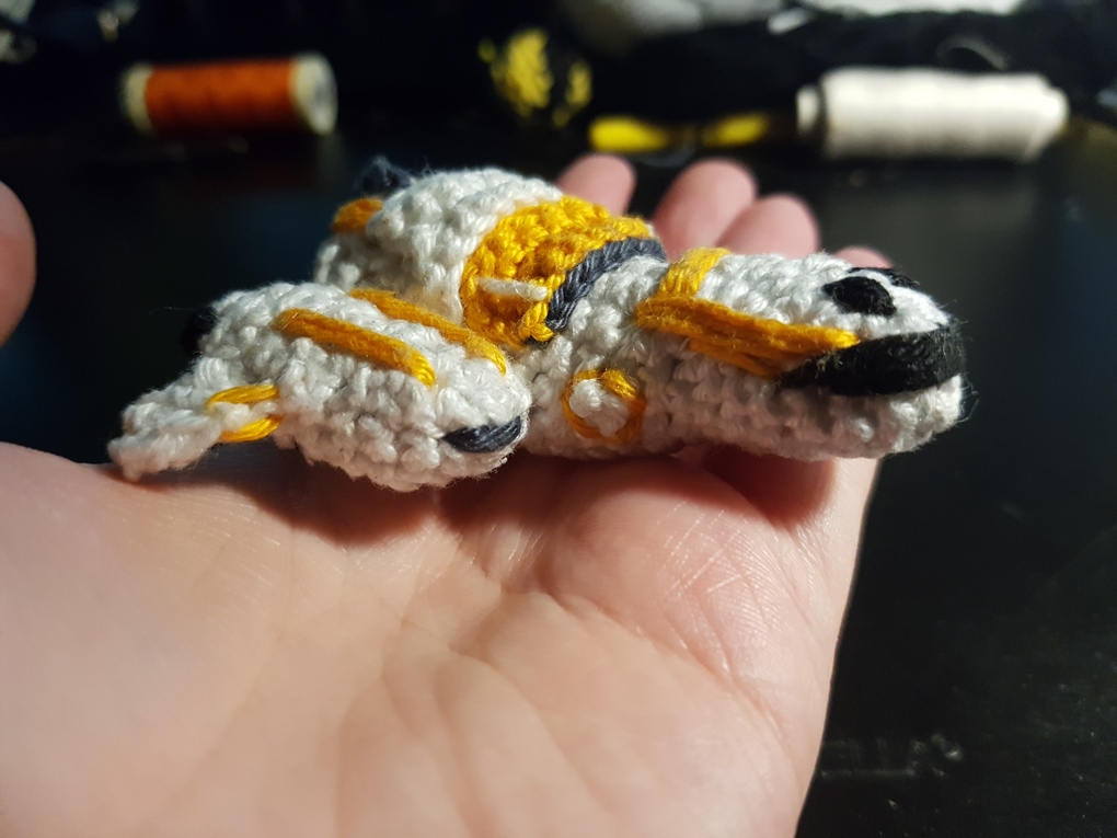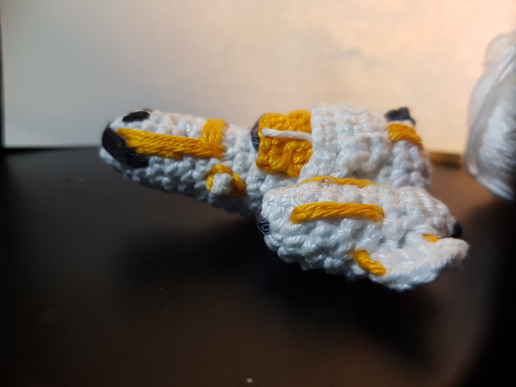 I crocheted a Freelancer Max in Pocket format! Several parts are crocheted and sewed together, with more details sewed on. And of course I didn't forget the rear turret ;)
