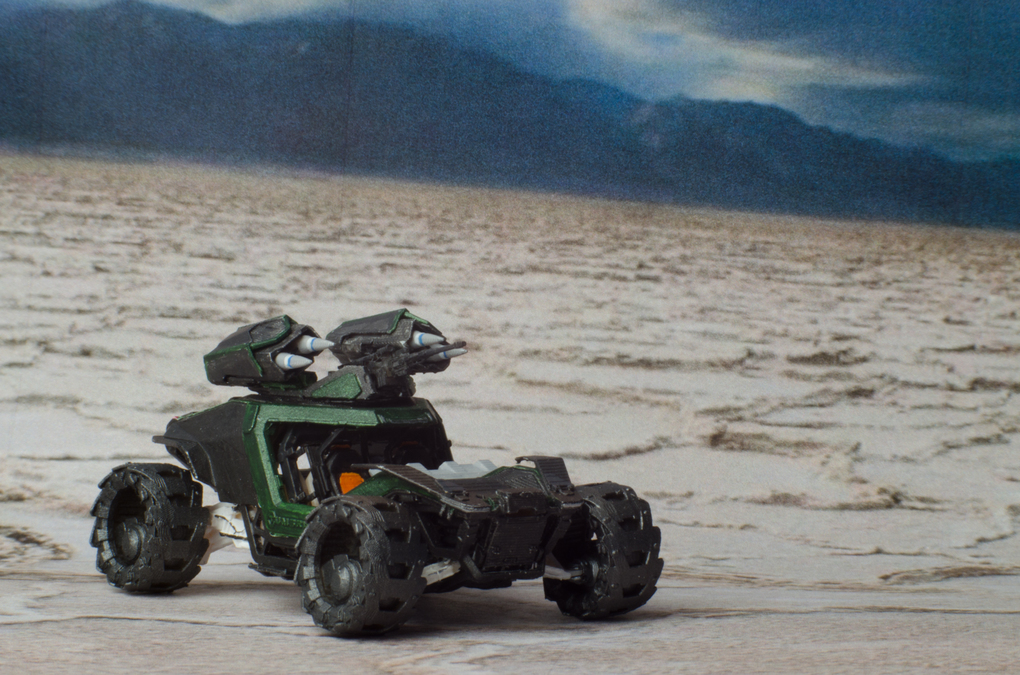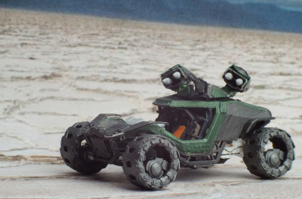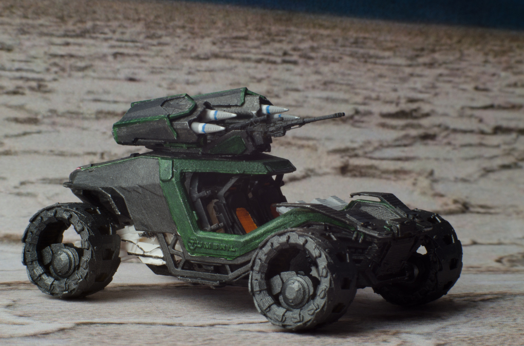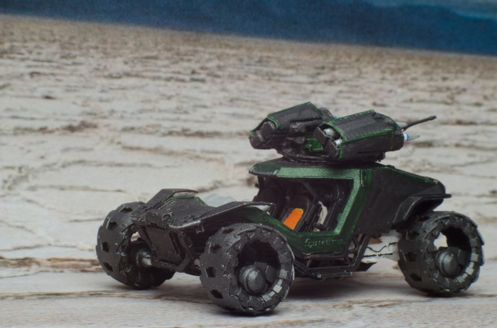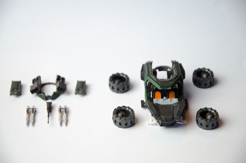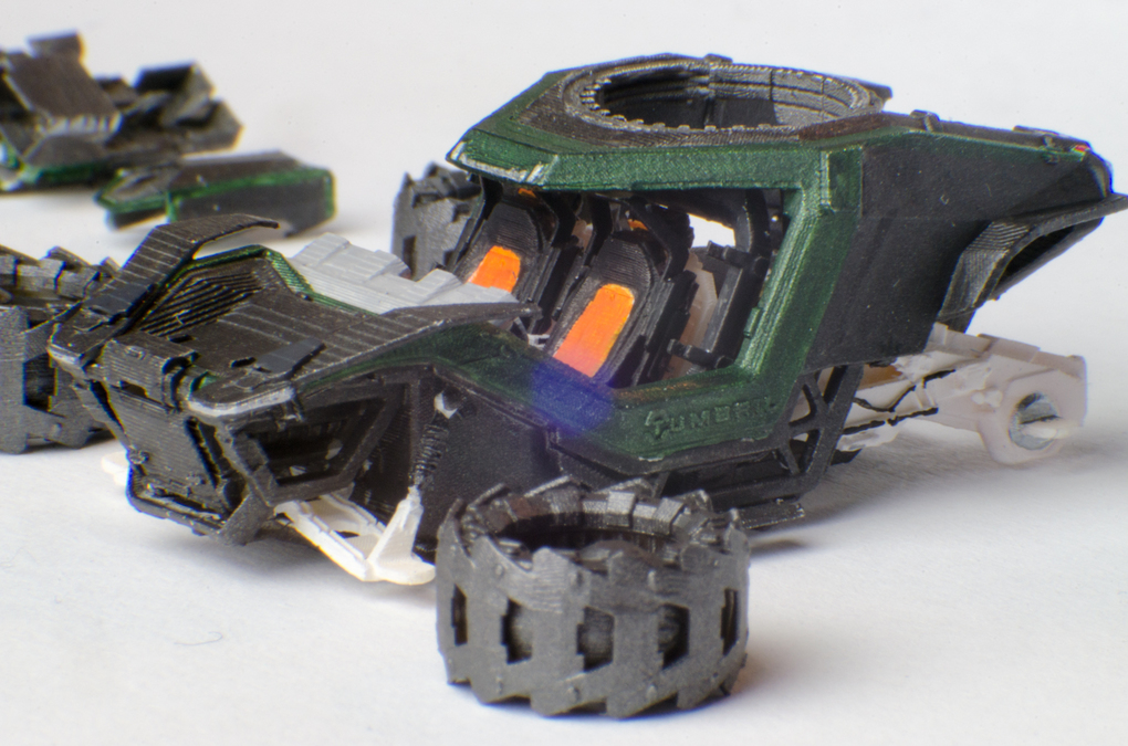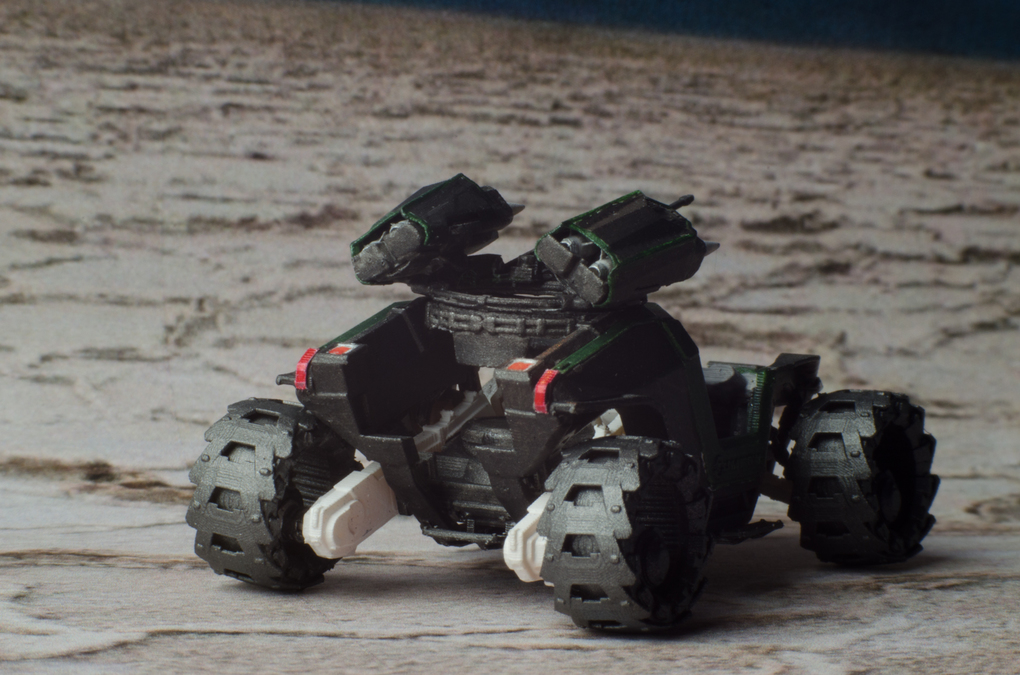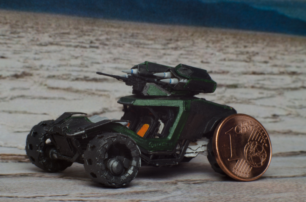 I downloaded the holoviewer file and edit it for printing. I also changed a few things at the back, to make it look more like the Cyclone in the announcement video. Then i printed it in multiple part in 1:125 scale, painted and assembled it.