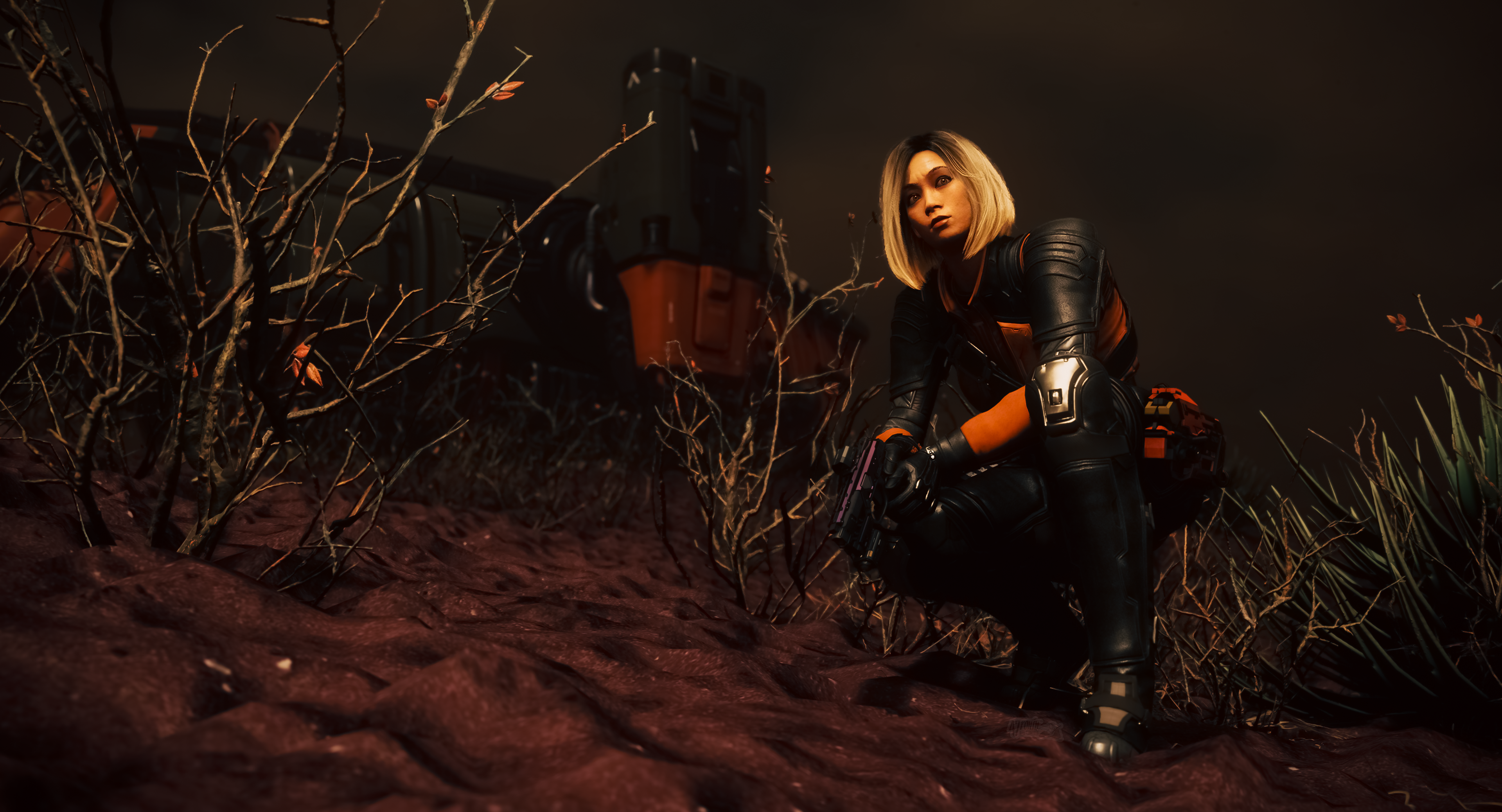 A lone mercenary seeks kopion prey in the desert hills of Hurston