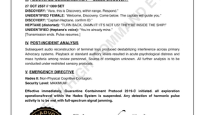 Subsequent audio reconstruction of terminal logs produced destabilizing interference across primary Advocacy systems. Playback at standard auditory levels resulted in acute psychological distress and mass hysteria among review personnel. Source of contagion unknown. All further analysis is to be conducted under restricted sensory protocols.