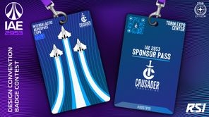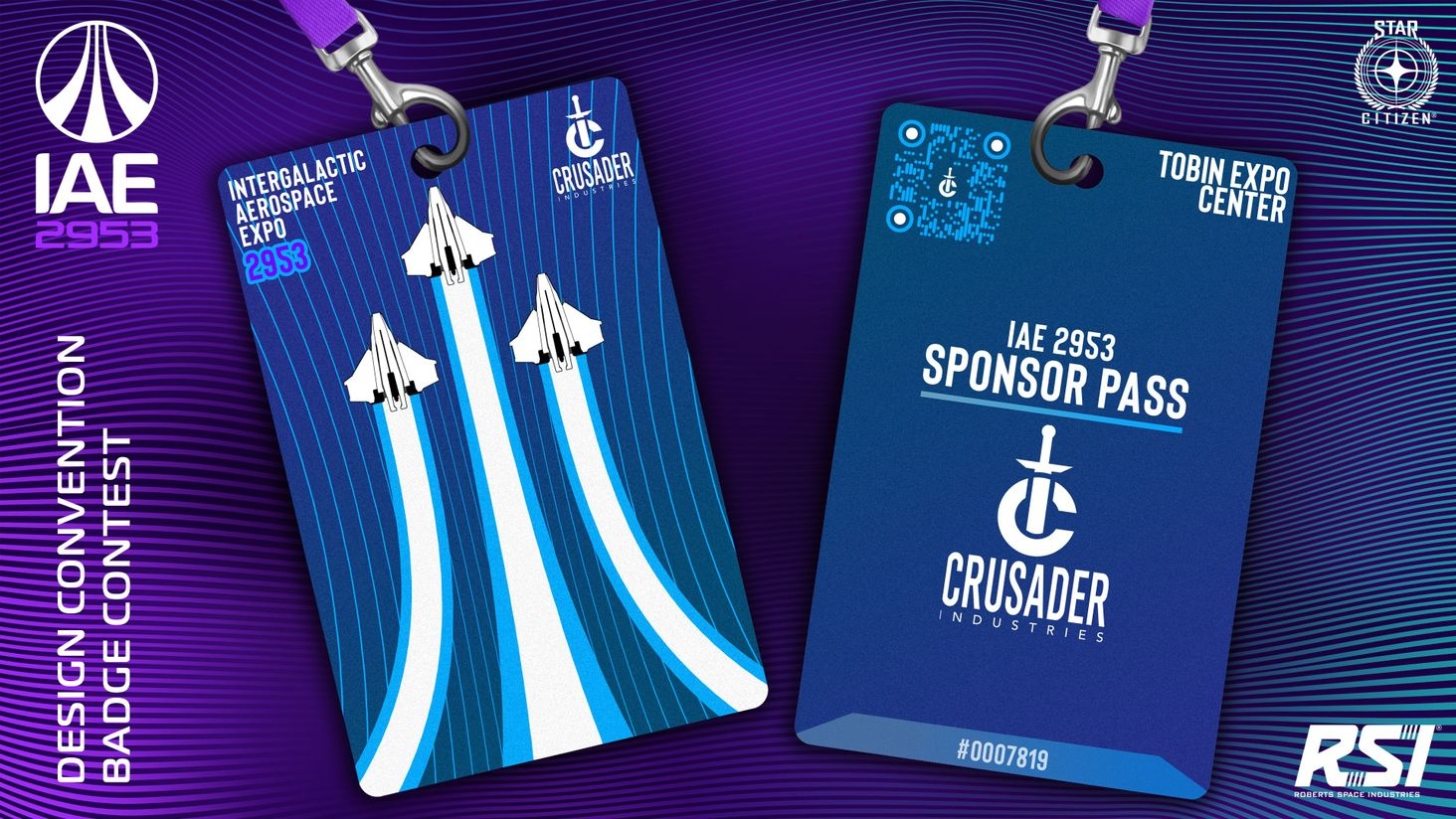IAE 2953 Badge Contest entry #1: A Crusader sponsor badge, featuring 3 Spirit C1's that recreate the IAE logo. And, of course, a QR code linking straight to the C1, so Crusader sales representatives can easily show off the sleekest ship in the verse.