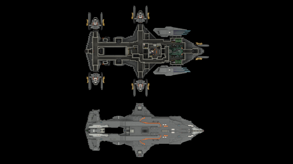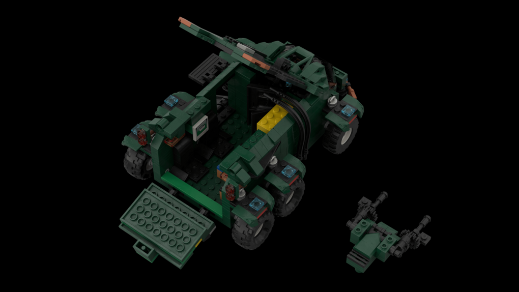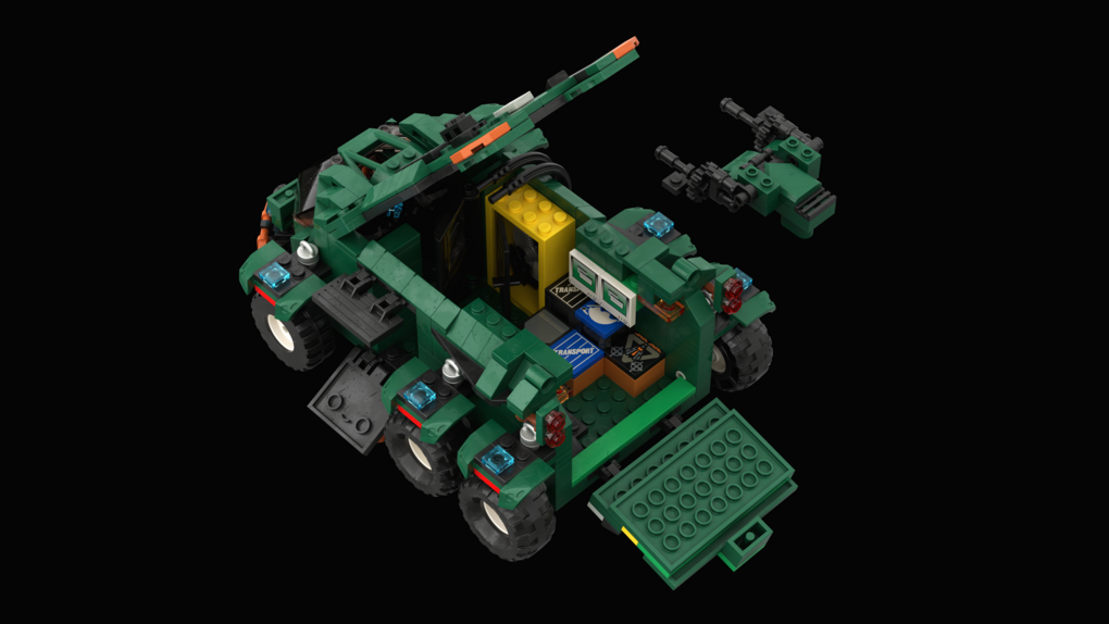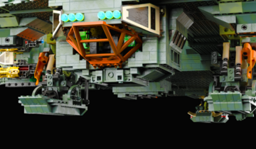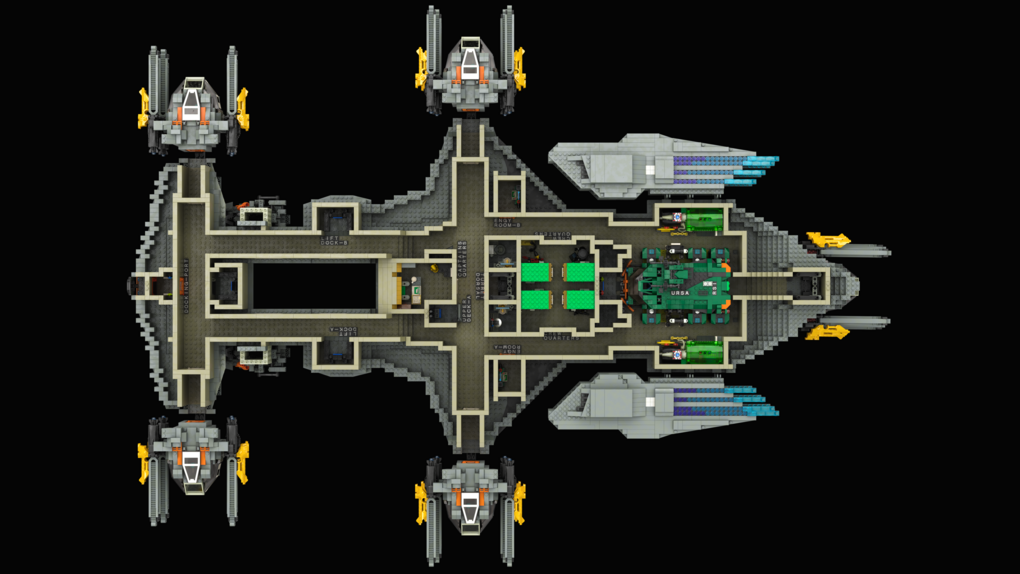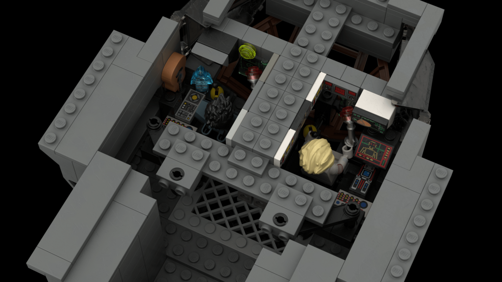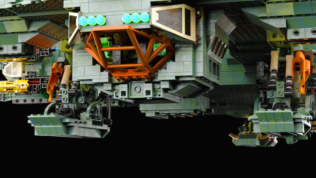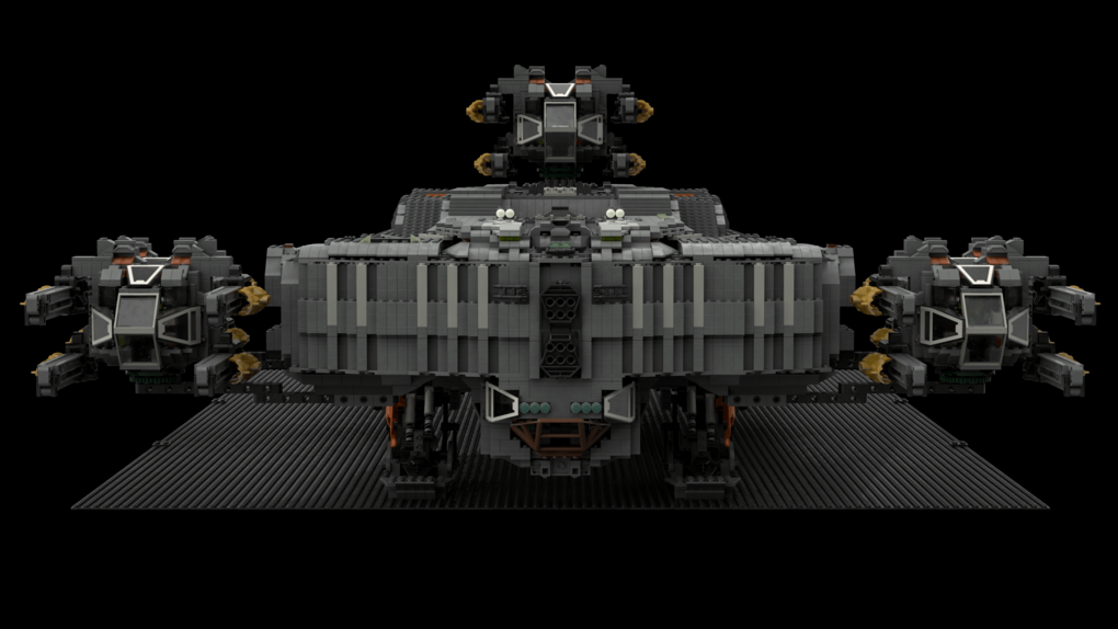 The MOC consist of 14327 parts in total. All shots rendered in 4K, IRL estimation size of the build is about 40 inches long in length, 15 inches tall in height & 20 KG in weight. Most parts of the ship you will be able to interact / remove, from turrets to the doors & thrusters.