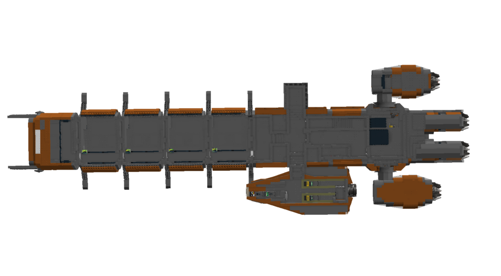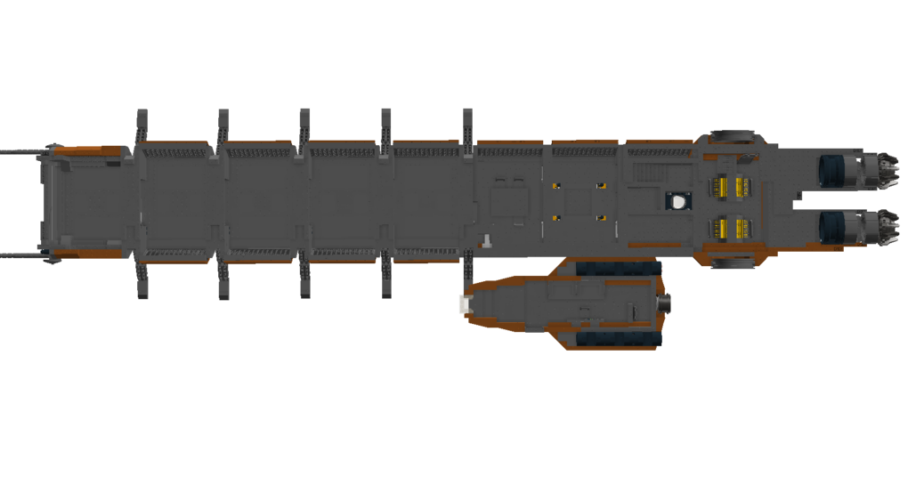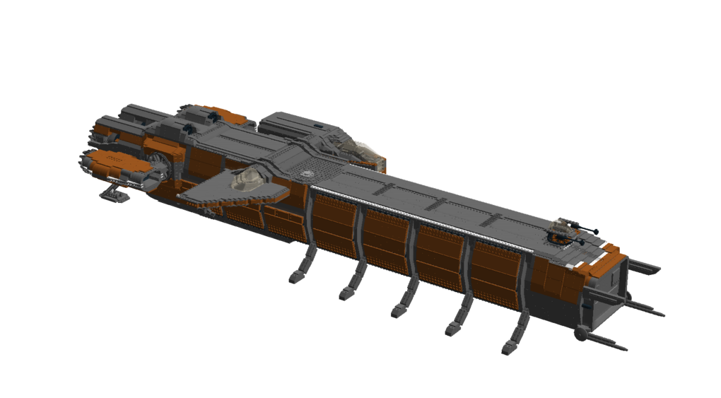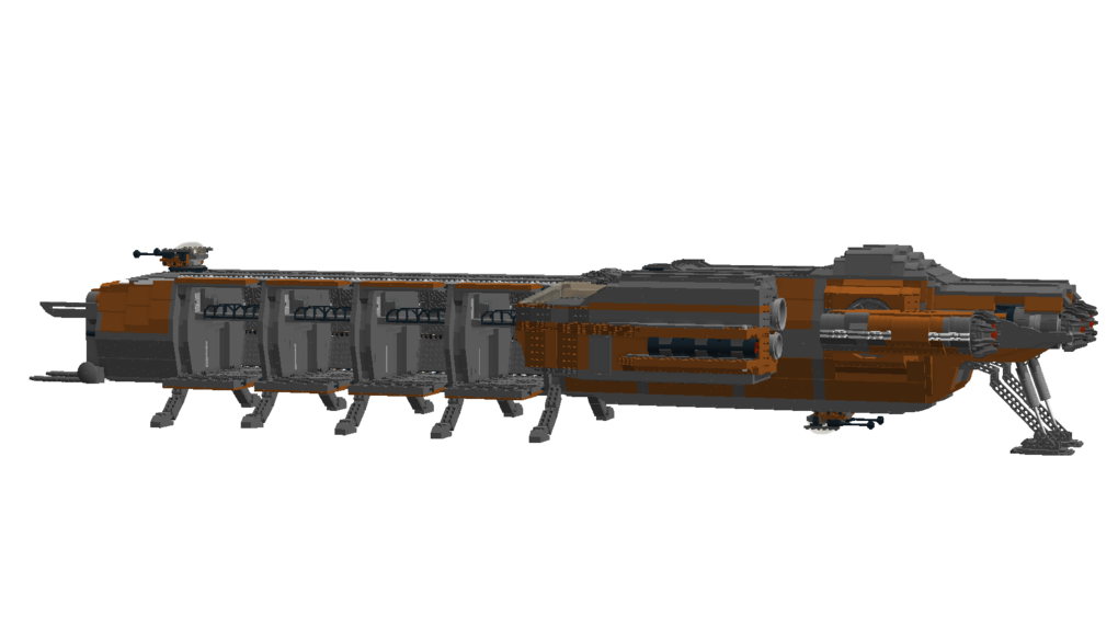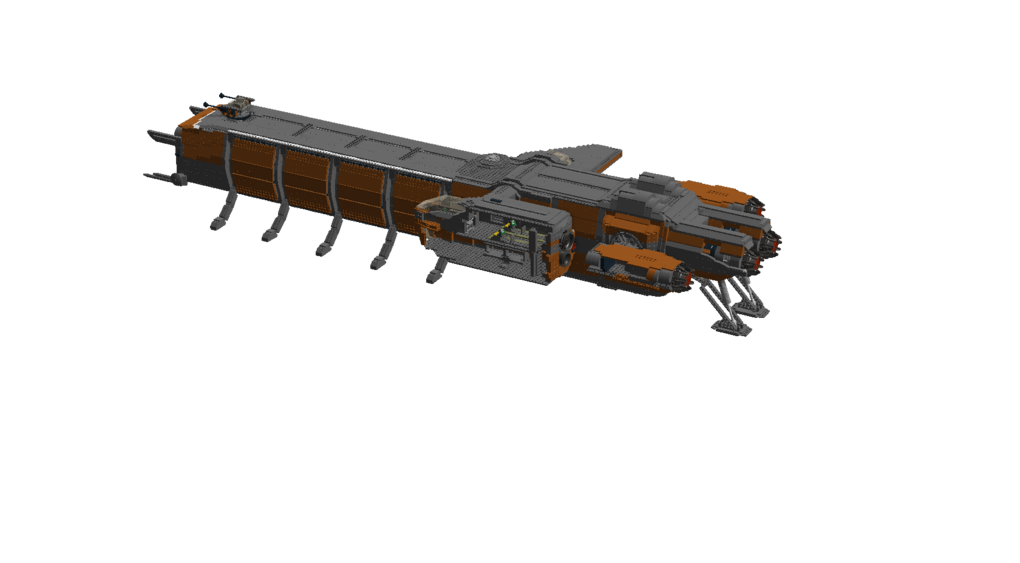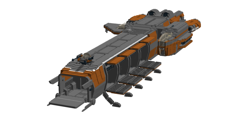 The ship is made out of 7298 Bricks All cargo doors can open Command module can be detached from the main body All cargo modules can be interchanged and detached Functional landing gear Turrets with access to the interior Interior: cockpit co-pilot seats engine room powercore room table room with shower lower command module with 4 beds and engineering chairI hope you enjoy this build and if you want to see any other ship, you can comment and I may build it.