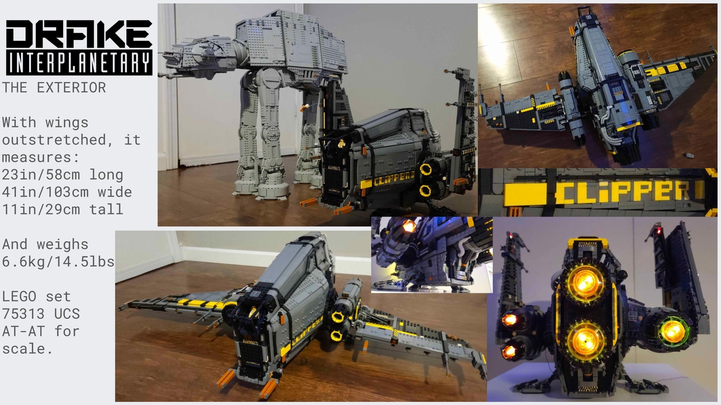 ~9000pcs LEGO model of the Drake Clipper I designed and built, featuring a full Interior and lights. Sorry if my photos aren't the greatest, all my skill points went into the LEGO skill tree xD.