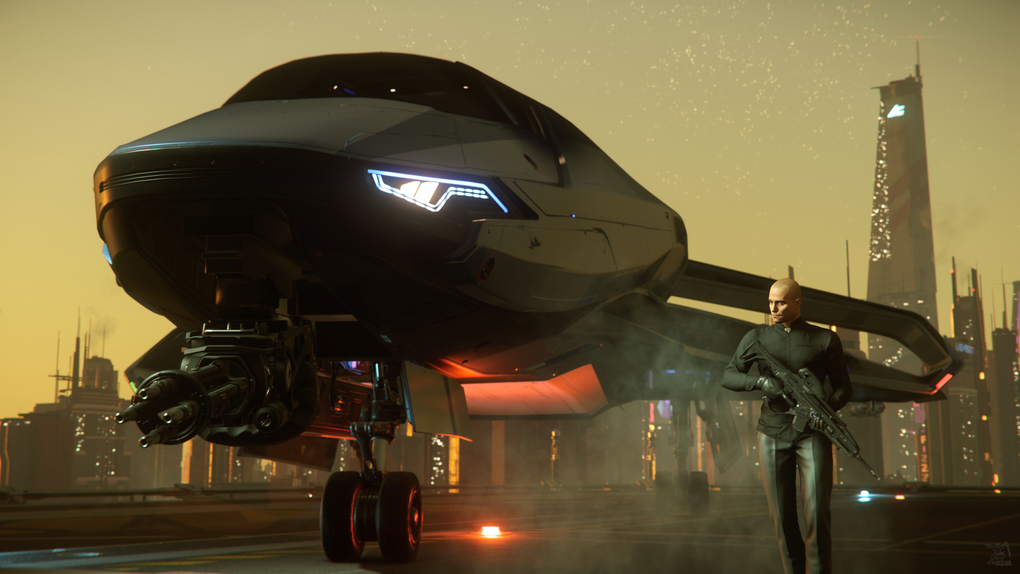 These were all captured in-game within Star Citizen Alpha 3.5.*. There are no post-production edits (outside image editor like Photoshop) other than adding my watermark, downsampling to 4k and cropping/rotating some of the images. ReShade was used in some of the images to adjust levels, add filmgrain, etc.