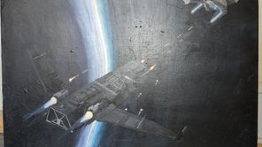 My youngest brother (he is 14!) was so sweet to paint me this as a present for my last birthday. He asked me what kind of a painting I would like to hang up in my apartment, and I told him that I am a big fan of this one space ship in this game called Star Citizen, and I gave him some concept art of it as reference. I actually didn't expect that he would put this kind of effort into this painting (he worked on this for months) and that the result would be this amazing. I hanged it up on a special place, directly over my desk. Due to this he actually got interested into Star Citizen as well and plays it from time to time now.
