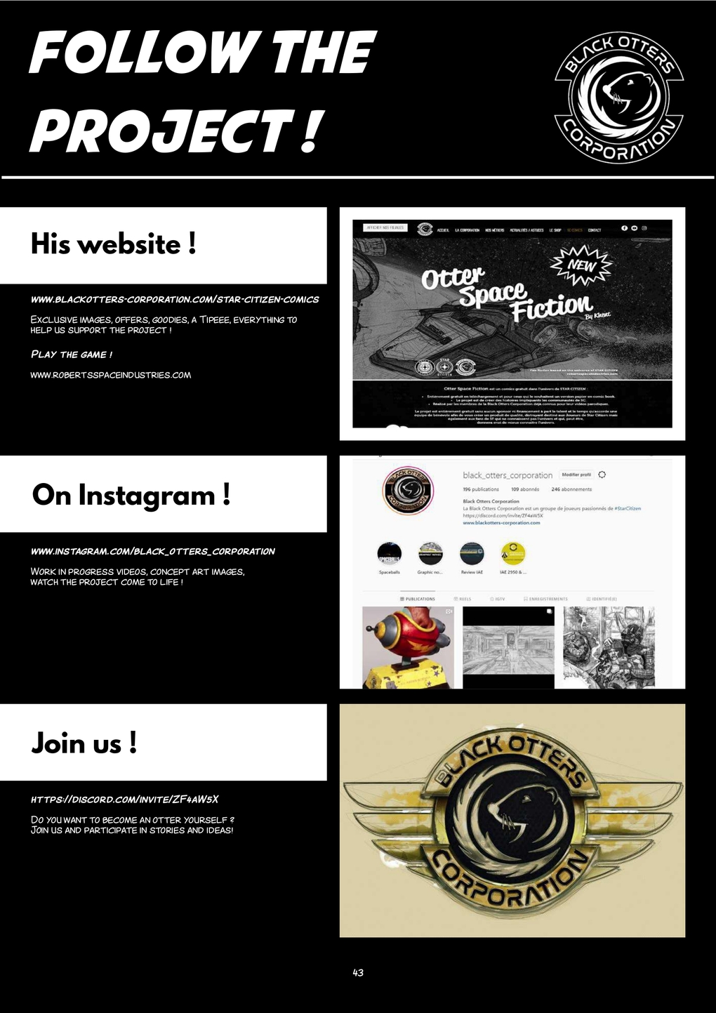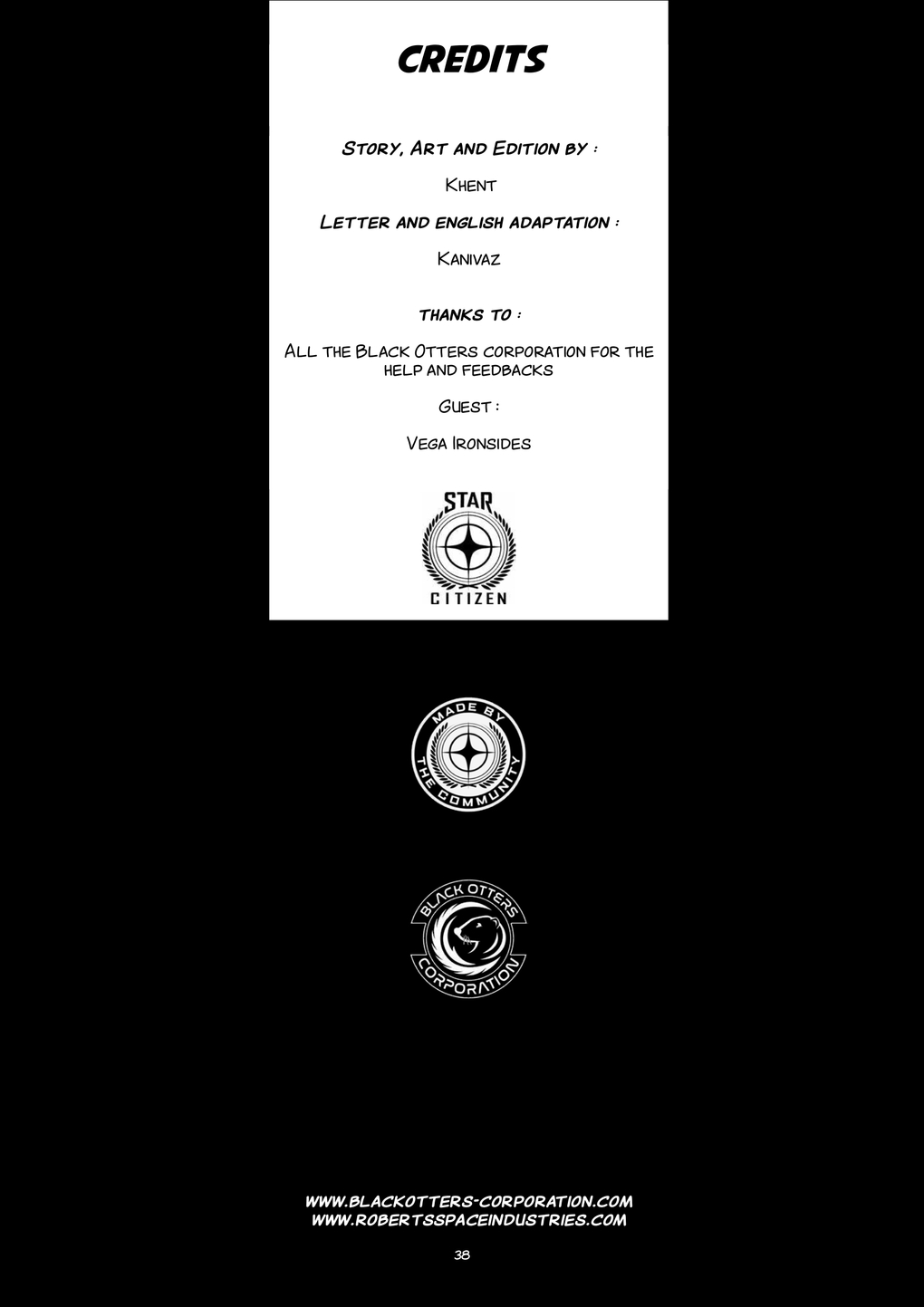 The new comic strip in the universe of STAR CITIZEN: • Completely free to download • The project is to create stories involving SC communities. • Produced by members of the Black Otters Corporation, the project is completely free. Achievement without any sponsor or funding but only thanks to the involvement and talent of a team of volunteers to offer you a quality product, intended for Star Citizen Players but also SF fans.