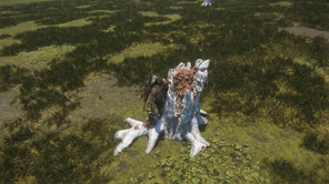 Flying over the fields, Mayrotek came across an interesting place with a clearing of stumps infected with fungal biomass.
