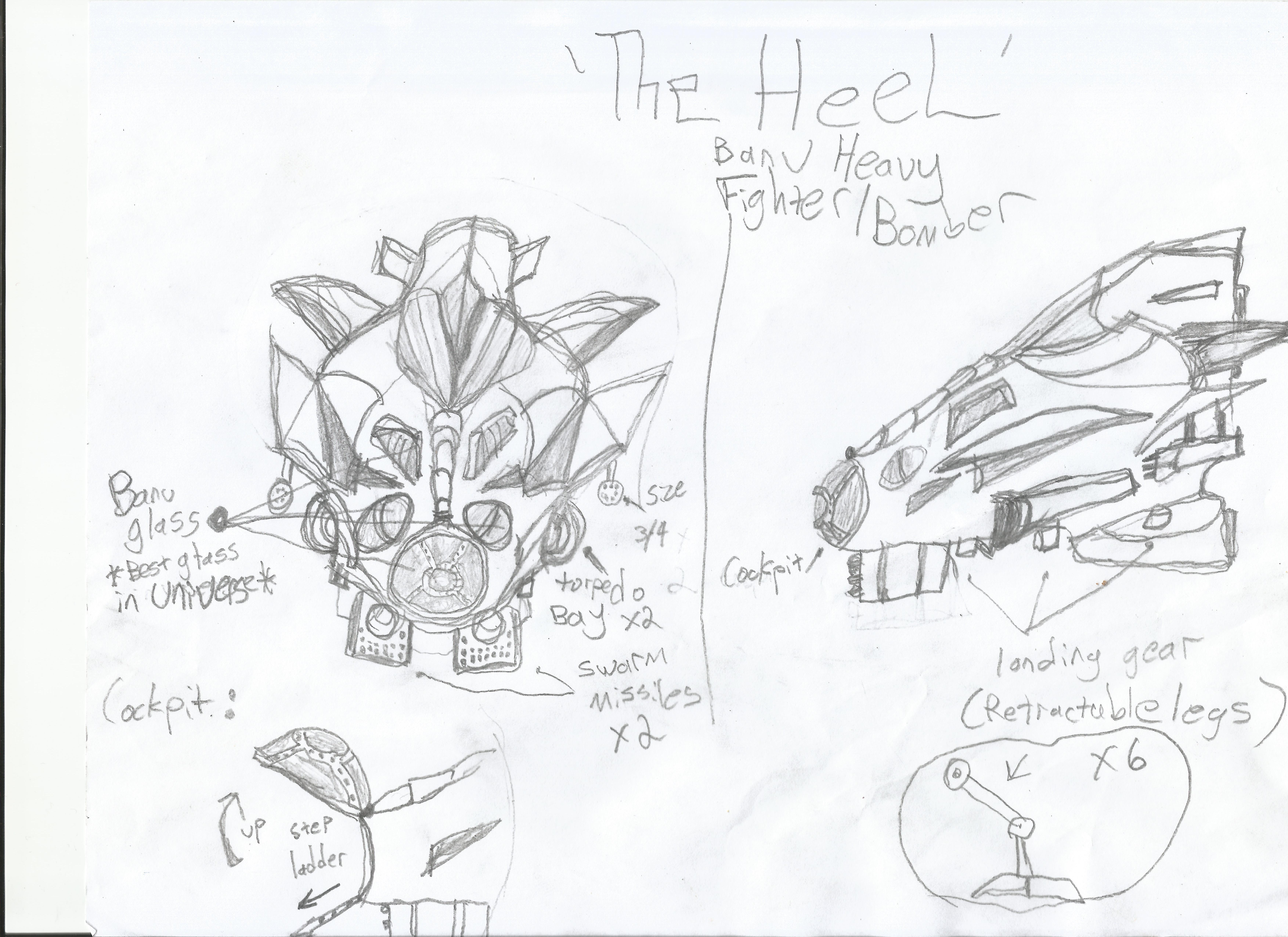 Hey guys!!! thanks for viewing my ship idea! This is the Banu Heel, its a heavy fighter bomber! ...