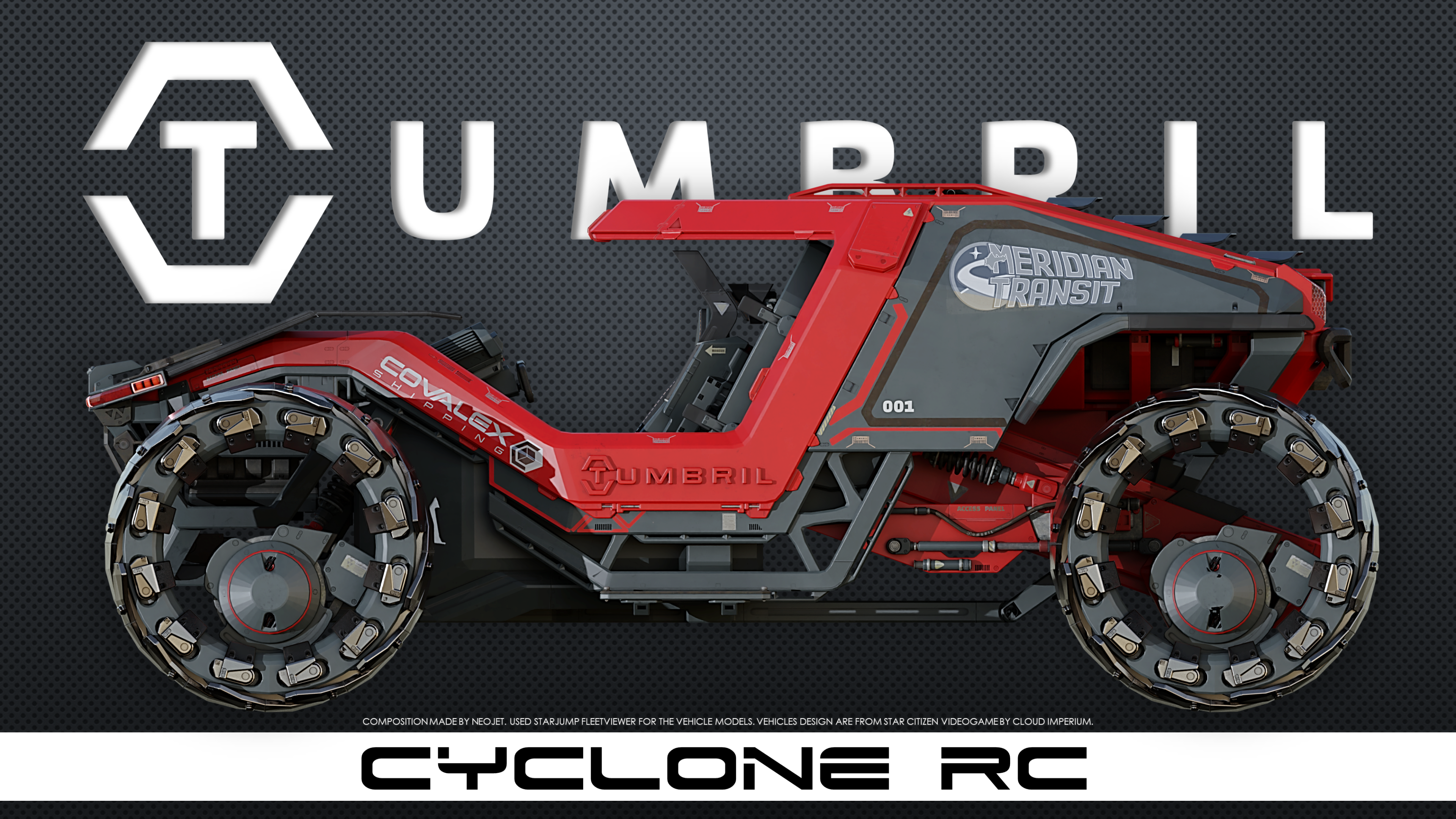 The Tumbril Cyclone RC is a civilian racing vehicle that is part of the Cyclone series. It features a modified intake system to allow for controlled bursts of speed as well as tools to customize handling.