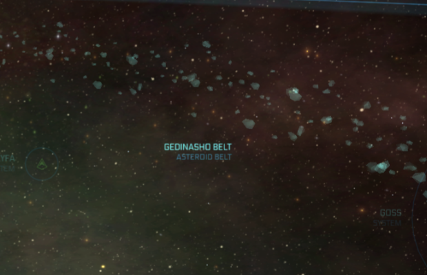The Gedinasho belt (Charon belt alpha) is an asteroid belt in the Charon system, United Empire of Earth (UEE) that orbits the system's sun between Charon III and Charon IV. It was named after Gedinasho, a fictional hero character created by artist/writer Fief whose comics were adapted to vid multiple times in the 25th century. Merchant marine Max Keaton, who discovered the system, had been a fan of Gedinasho since childhood.