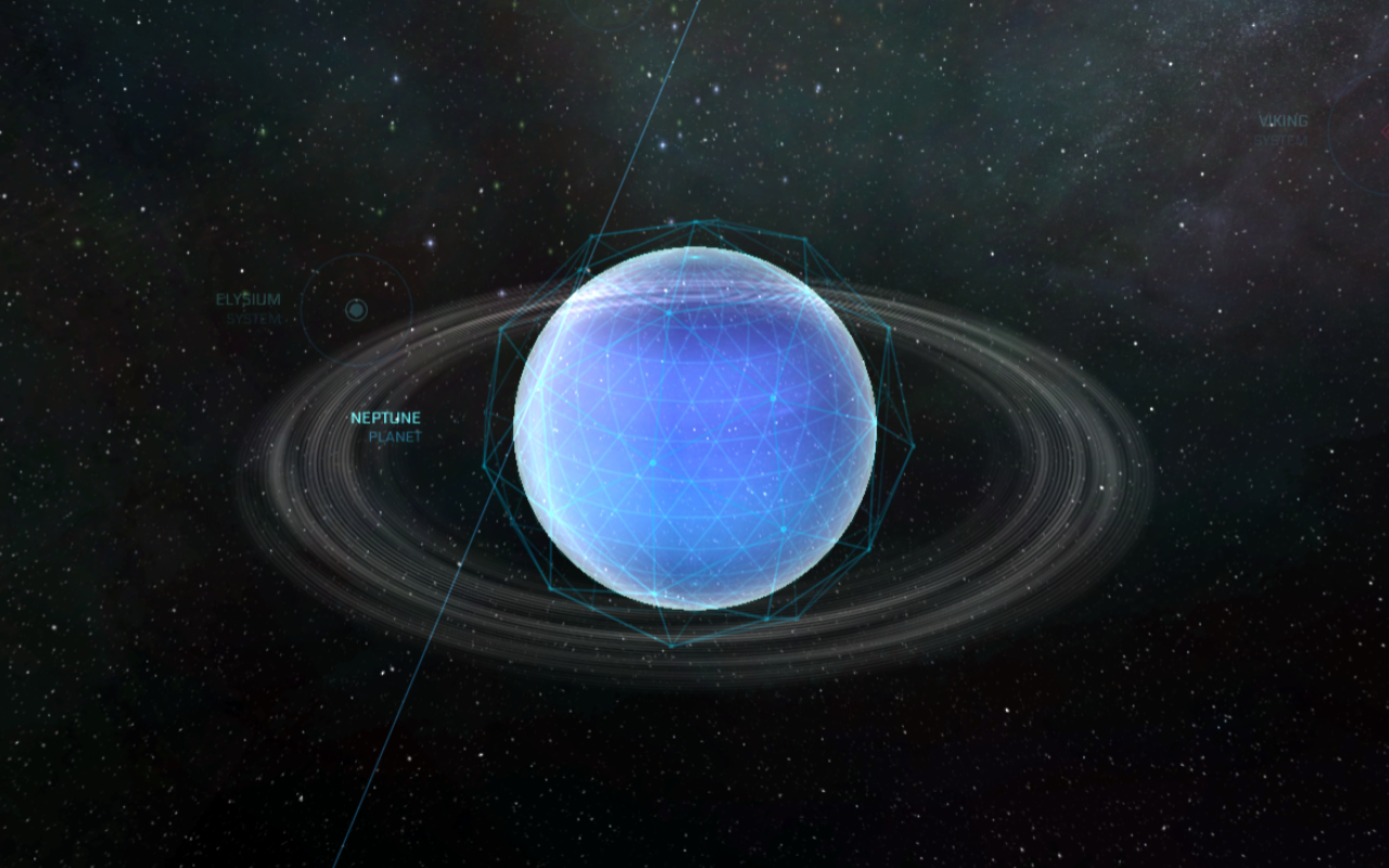 Neptune (Sol VIII) is the eighth planet from the sun of the Sol system, United Empire of Earth (UEE). The densest of the Sol system's gas and ice giant planets, its atmosphere contains high proportions of ice and traces of hydrocarbons. Roughly every two-and-a-half centuries SEY, Neptune and Pluto (Sol IX) swap orbital positions for about 20 years.
