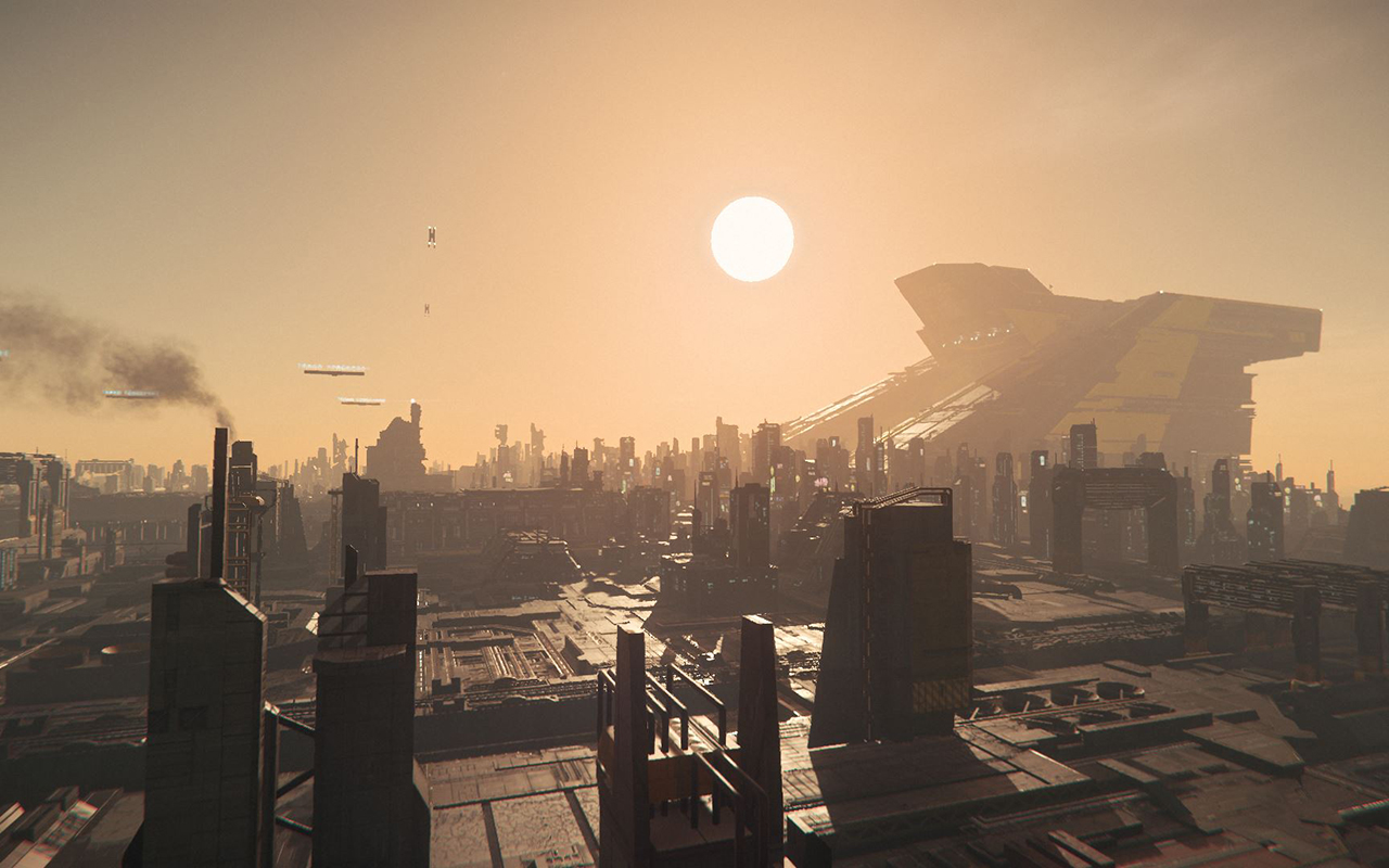 Lorville is a city on Hurston (Stanton I), home to the headquarters of Hurston Dynamics, the Central Headquarters and Shared Services Center (or Central Tower). Initially founded as a barracks for employees of Hurston Dynamics under the letter designation LOR for "Local Occupational Residency," it has since grown to become the most populous location on the planet. Hurston Dynamics maintains a no-fly zone over the city, and requires spacecraft to land at the nearby Teasa Spaceport or on top of Central itself. The air quality of Lorville is generally poor due to decades of unrestricted pollution.
