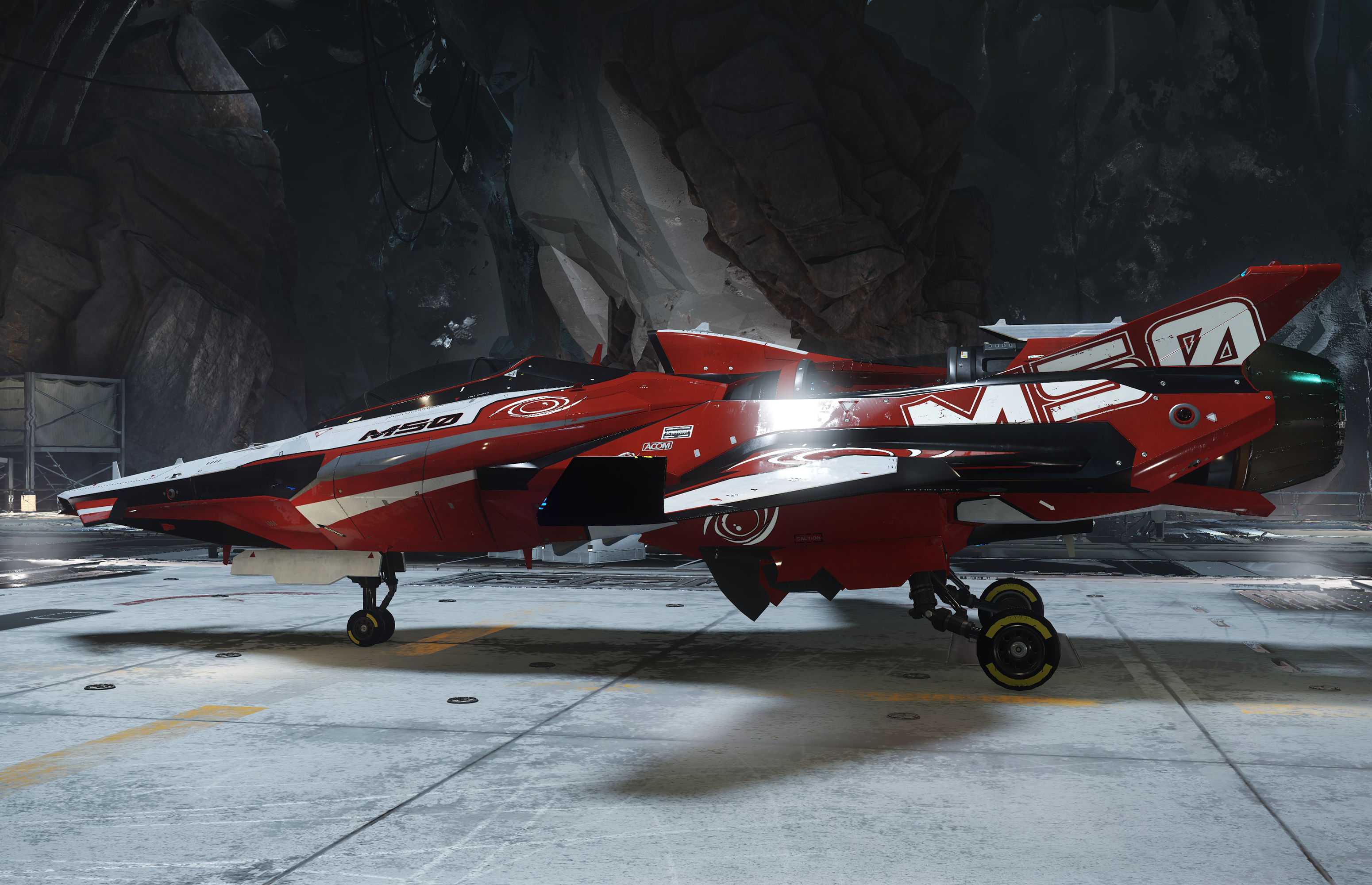 The M50 is a single-seat performance racing spacecraft sold by Origin Jumpworks. Built for speed and maneuverability, it was first conceived specifically to capture the Murray Cup racing trophy. An interceptor model of the M50 is also produced by Origin; this type is actively operated by the United Empire of Earth (UEE)Advocacy. Since its last major rework in SEY 2945, the M50 has earned a number of top racing honors.